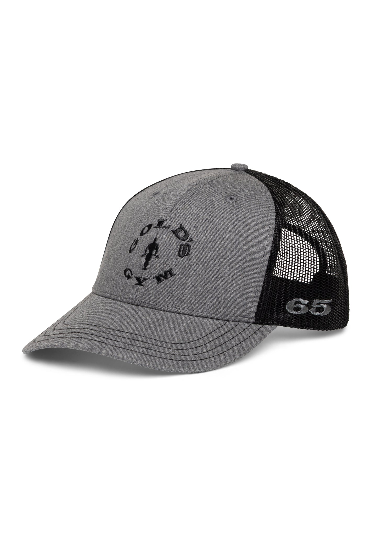 Designed with a structured front panel and breathable mesh back, this trucker snapback features embroidered Gold’s Gym® logo and a “65” side detail marking the year it all started.